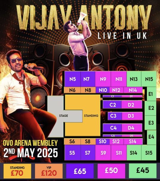 London is gearing up for a sensational evening of Tamil music as the legendary Vijay Antony gets ready to perform live at the iconic OVO Arena Wembley on May 2, 2025.