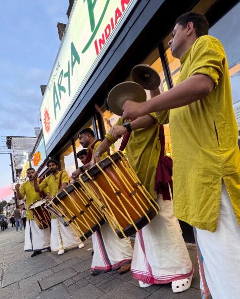 Spread across three days, from the 3rd to the 5th September, Arya Bhavan’s Onam celebrations included food, culture & music. A traditional Onam feast consisting of 22 vegetarian items was available as a Sadhya ( served on a banana leaf), or as a Thali. Guests were also treated to energetic & captivating live performances by Chenda Melam, Kerala’s traditional drummers, & a Kathakali dancer.