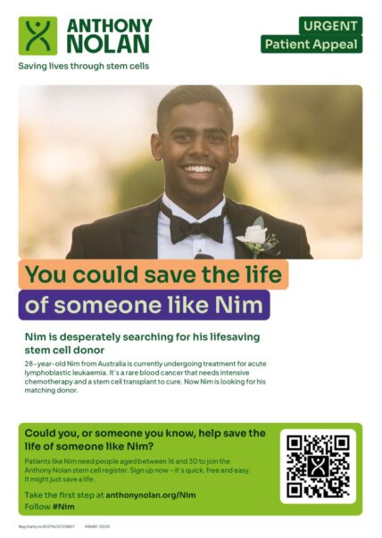 Nim shares: “I am at a critical point in my cancer journey. My specialists think I may need a stem cell transplant to survive, but unfortunately the chances of me finding a perfect match are low.