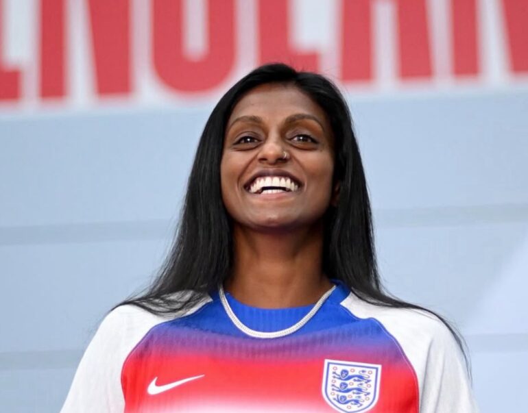 Pictured above, Lucindha featured in the Lioness England Kit Launch