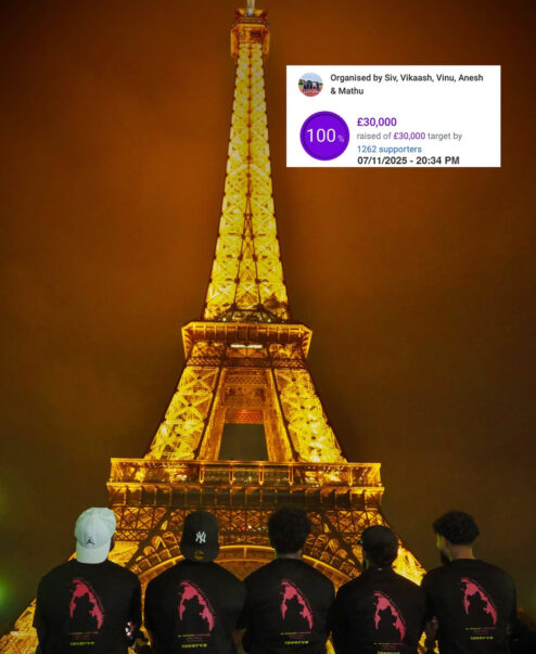 On the 4th November, Five British Tamils of Eelam heritage, embarked on a challenge to run from the London Eye to the Eiffel Tower in under 48 hours to raise £10,000 for charities serving the Tamil community in the motherland.