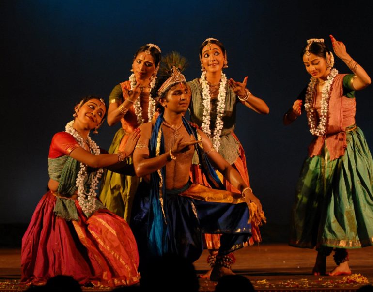 Stories from the life of Krishna, one of the most beloved Hindu deities, have inspired dancers, musicians, and writers for centuries. The production weaves together a tapestry of Indian classical music, dance, and theatrical performance and takes viewers on a breath-taking journey to Gokulam, Vrindavan, and Mathura– the divine realms of Lord Krishna. Here, all beings live in the light of the Krishna, the Ultimate Object of Knowledge and the Supreme Goal of Life. The dancers offer artistic interpretations of significant narratives from the life of Krishna, and perform to traditional music compositions, some of which are at least a thousand years old.