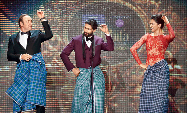 Kevin Spacey stole the show dancing to the “Lungi Dance” with Bollywood stars Deepika Padukone, Farhan Akhtar and Shahid Kapoor. The song by Indian Independent artist “Yo Yo Honey Singh” is a tribute to South India’s biggest star Rajinikanth, and featured in the popular Hindi language film “Chennai Express” starring Shah Rukh Khan & Deepika Padukone.