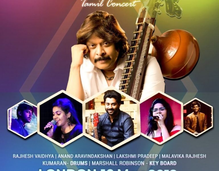 For the UK tour, Rajhesh Vaidhya would be accompanied by Guberan on drums and Vijayan on keyboard. Providing a perfect complement of voices to them on this tour are Super Singer stars Anand Aravindakshan, Lakshmi Pradeep and Malavika Rajhesh.