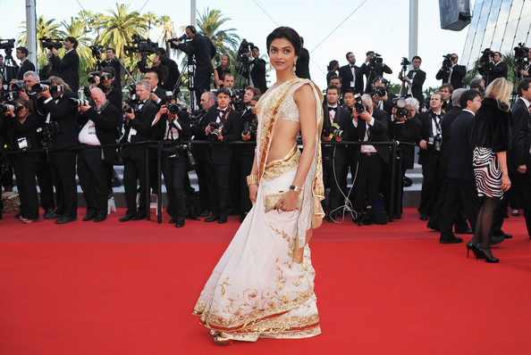 The gorgeous Deepika Padukone (Om Shanti Om, Karthik calling Karthik) has made waves on one of the most famous red carpets in the world, at the Cannes film festival. When she first arrived at Cannes, she made a bit of a strange fashion choice, with an off white ‘Anarkalli’ costume, giving her no curves or the ability to show off her stunning figure.