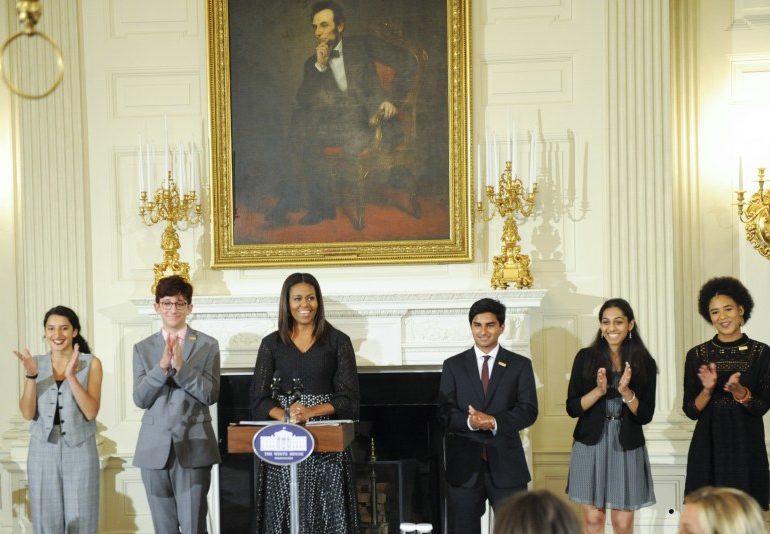 They delivered their poetry in front of their family and distinguished guests including the First Lady, Michelle Obama, who is also the honorary chairman of the President’s Committee on the Arts and Humanities.