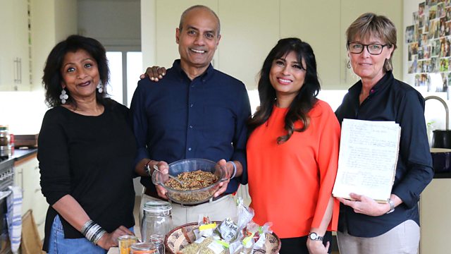 British Sri Lankan Tamil newsreader George Alagiah invites Nisha to a Sri Lankan lunch at his family home. His family continue to cook the recipes passed down by his mother, many of which they have written down. Nisha joins George, his sister Mari and his wife Fran in the kitchen to learn some of their family recipes. Together they make George’s mother’s recipe for roasted curry powder, the basis of Sri Lankan meat curries, which they turn into a delicious chicken and coconut curry. George’s wife Fran, who had no family connection to Sri Lanka until she married George, tells Nisha how her mother-in-law made sure she knew how to make Sri Lankan dishes for her husband to be! She shares a classic coconut and cabbage side dish with Nisha, taught to her by her mother-in-law.