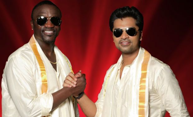 Simbu tweeted earlier today; Just received akon from the airport 🙂 yes love anthem final international version is getting ready! Thanks to all my fans for the patience