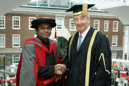 16th December 2009 saw renowned composer Allah Rakha Rahman receiving an Honorary Fellowship of Trinity College London (Hon TCL). The award was presented by Barry Wordsworth as part of the Trinity College of Music graduation ceremony in the Old Royal Naval College Chapel, on the Old Royal Naval College world heritage site in Greenwich – the home of the prestigious Trinity College of Music. On a beautiful and snow-clad day, the campus looked stunning, especially views of the River Thames.